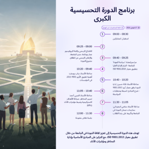 في إطار سعي جامعة محمد بوضياف بالمسيلة المستمر نحو الارتقاء بمستوى الأداء المؤسسي وتحقيق التميز بمعايير عالمية، تتشرف الجامعة بدعوة كافة الأساتذة، الإداريين، والطلبة، والمهتمين بمجال الجودة، لحضور الدورة التحسيسية الكبرى التي تهدف إلى ترسيخ ثقافة الجودة والتعريف بمتطلبات المعيار الدولي ISO 9001:2015.