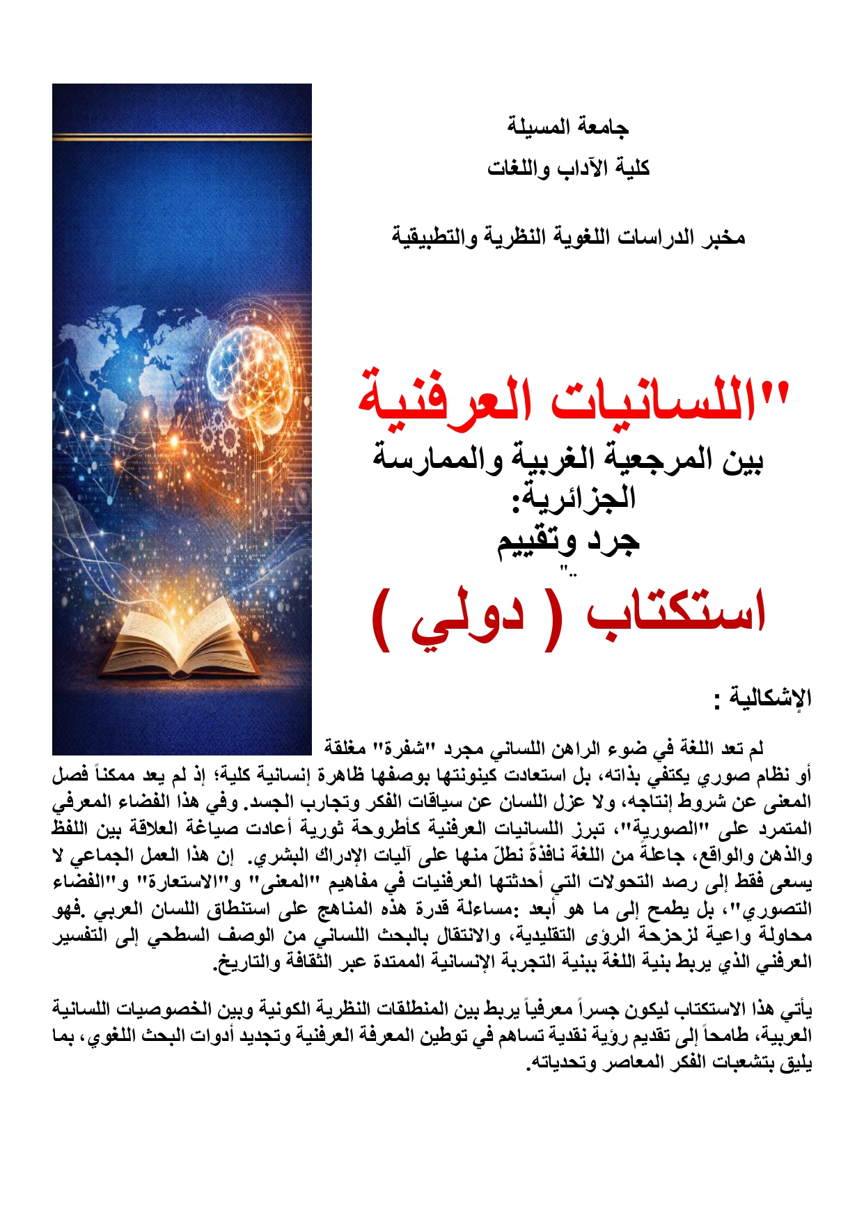 📢 إعلان عن استكتاب دولي: “اللسانيات العرفنية بين المرجعية الغربية والممارسة الجزائرية” 🎓🌍