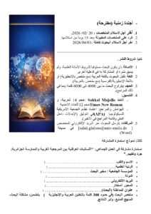 ⏳ آخر أجل لاستلام الملخصات: 20 فيفري 2026. ✅ الرد على الملخصات المقبولة: خلال 15 يوماً من الاستلام. 📥 آخر أجل لاستلام البحوث كاملة: 01 أفريل 2026.
