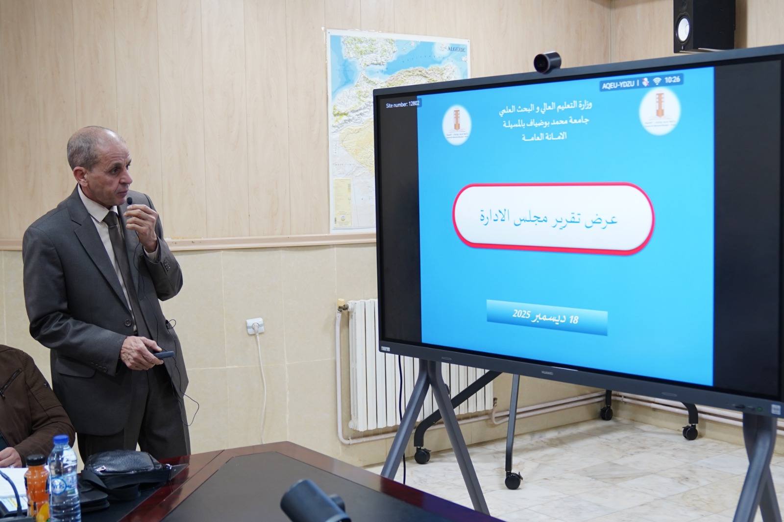 ويأتي هذا الاجتماع في إطار تعزيز آليات المتابعة والتسيير، وترسيخ مبادئ الحوكمة الرشيدة، بما يضمن حسن إدارة الموارد وتحقيق الأهداف البيداغوجية والإدارية لجامعة محمد بوضياف المسيلة.