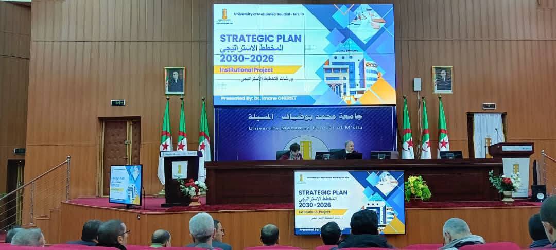 يوم الاثنين التاسع من مارس 2026 — تاريخٌ سيُكتب بحروف من نور في سجلّ جامعة محمد بوضياف بالمسيلة؛ إذ تُشرع أبوابها على مصراعيها أمام مرحلة تأسيسية استثنائية، بإطلاق ورشات إعداد المخطط الاستراتيجي للجامعة للفترة 2026–2030 — ذلك المخطط الطموح الذي سيرسم ملامح مؤسستنا للسنوات الخمس القادمة، ويُحدّد بوصلتها الراسخة نحو التميّز العلمي والريادة الأكاديمية والانفتاح على محيطها الاجتماعي والاقتصادي.
