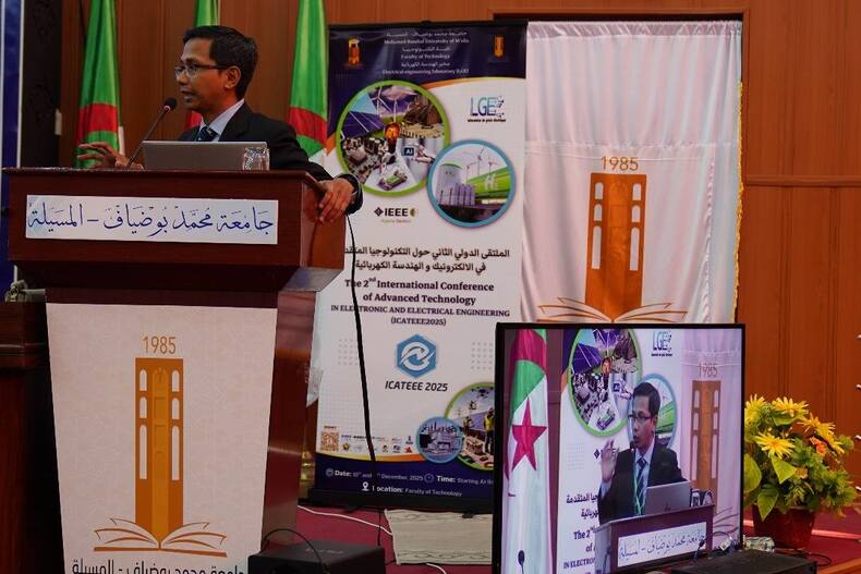 انطلقت صباح اليوم بقاعة المحاضرات ابن الهيثم فعاليات الملتقى الدولي حول التكنولوجيا المتقدمة في الإلكترونيك والهندسة الكهربائية ICATEEE2025، بإشراف السيد مدير الجامعة البروفيسور عمار بودلاعة، وبقيادة عميد الكلية الدكتور عبد القادر جراد، و رئيس الملتقى البروفيسور غضبان إسماعيل.