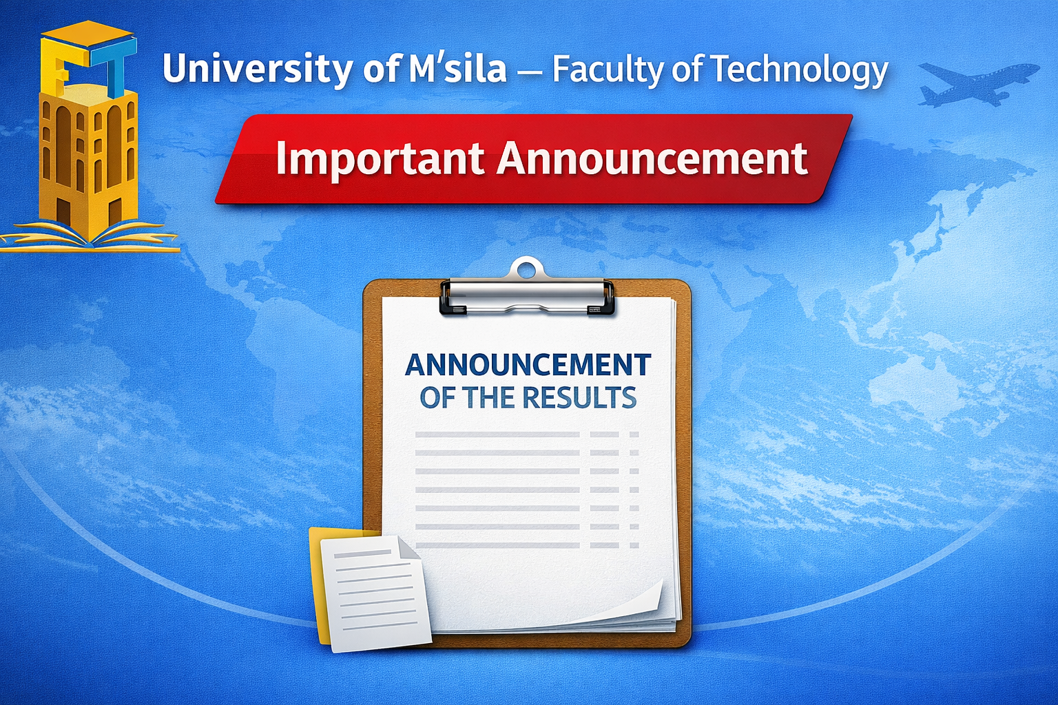 تُعلم كلية التكنولوجيا كافة الموظفين المعنيين أنه تم الإعلان عن النتائج الأولية للحركية قصيرة المدى بلخارج بعنوان السنة الجامعية [2025–2026].