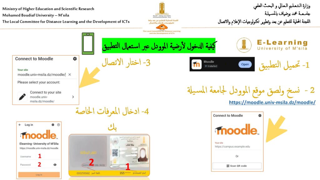 - منصّة التعليم عن بُعد (MOODLE): https://moodle.univ-msila.dz/moodle/