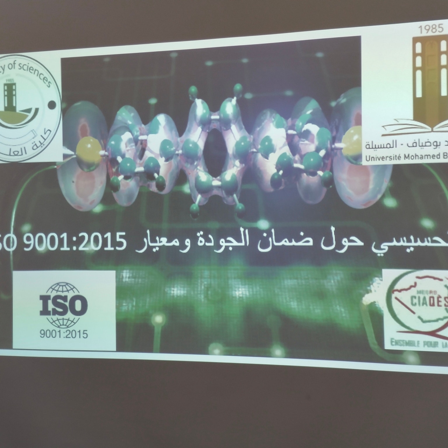 في إطار ترقية الجودة وتحسين الأداء المؤسسي، نظّمت خلية ضمان الجودة بكلية العلوم – جامعة المسيلة صبيحة يوم الخميس 15 أكتوبر 2026، على الساعة العاشرة صباحًا (10:00)، يومًا تحسيسيًا حول نظام إدارة الجودة ISO 9001:2015، وذلك بقاعة الدكتوراه B8 بالمجمع البيداغوجي لعلوم المادة.