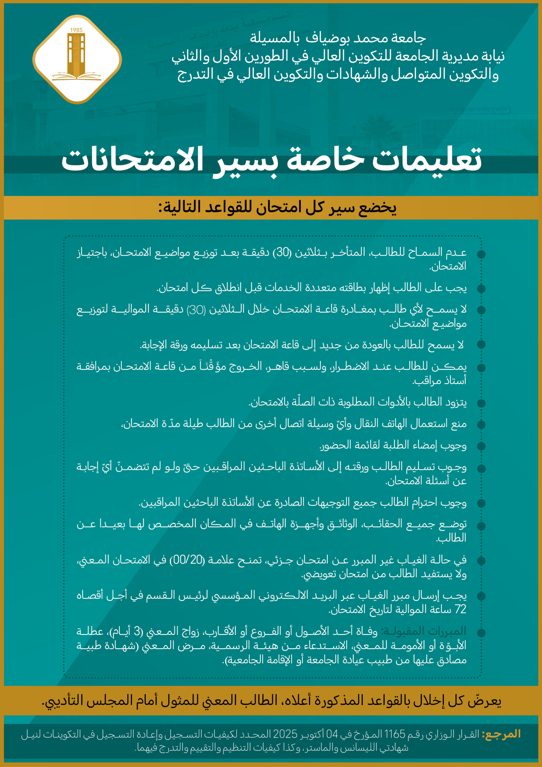 يخضع سير كل امتحان للقواعد التالية :تحميل التعليمات