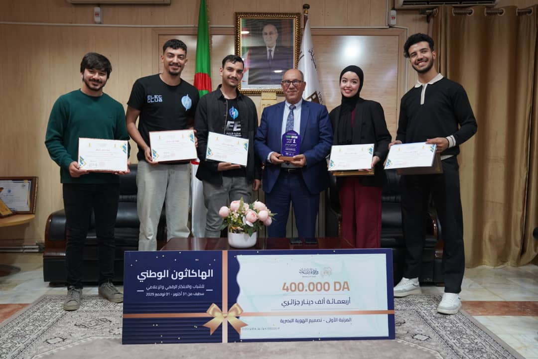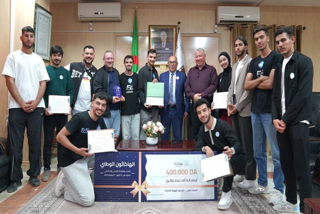 في أجواء احتفائية تسودها روح الاعتزاز والفخر، أشرف السيد مدير جامعة محمد بوضياف المسيلة البروفيسور عمار بودلاعة، صباح يوم الأربعاء الموافق ل 05 نوفمبر 2025 على تكريم نادي الإلكترونيك –Elec Clup التابع لكلية التكنولوجيا، وذلك عقب تتويجه بالمرتبة الأولى وطنيا في الهكاثون الوطني للشباب والإبداع الرقمي والإعلامي، والذي احتضنته ولاية سطيف خلال الفترة الممتدة من 31 أكتوبر إلى 03 نوفمبر 2025.