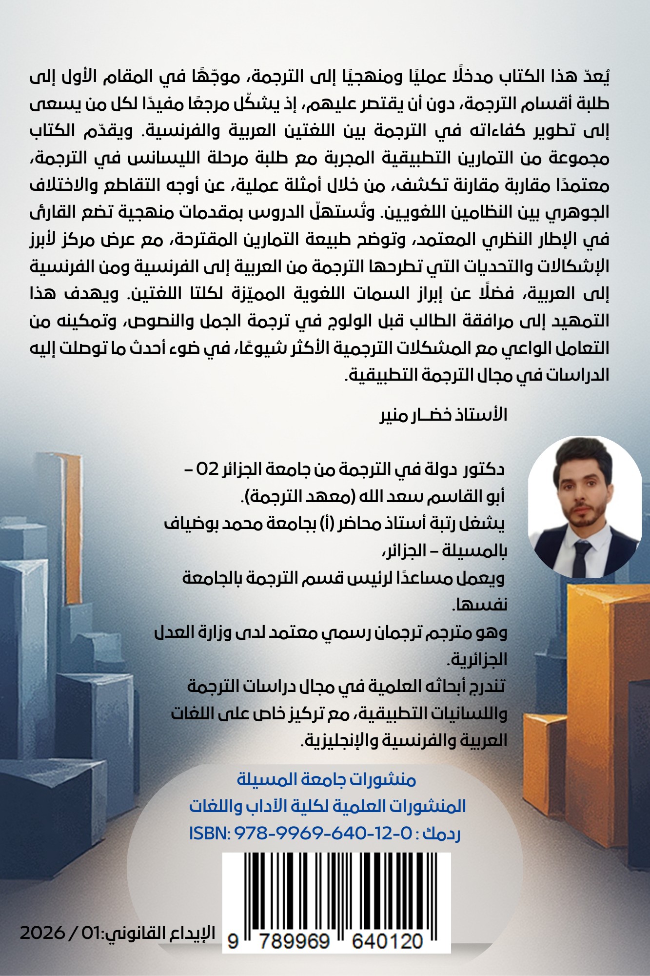 يسرنا أن نهنئ الدكتور خضار منير على إصدار كتابه البيداغوجي الجديد: “مدخل إلى الترجمة: دروس، تمارين وحلول”.