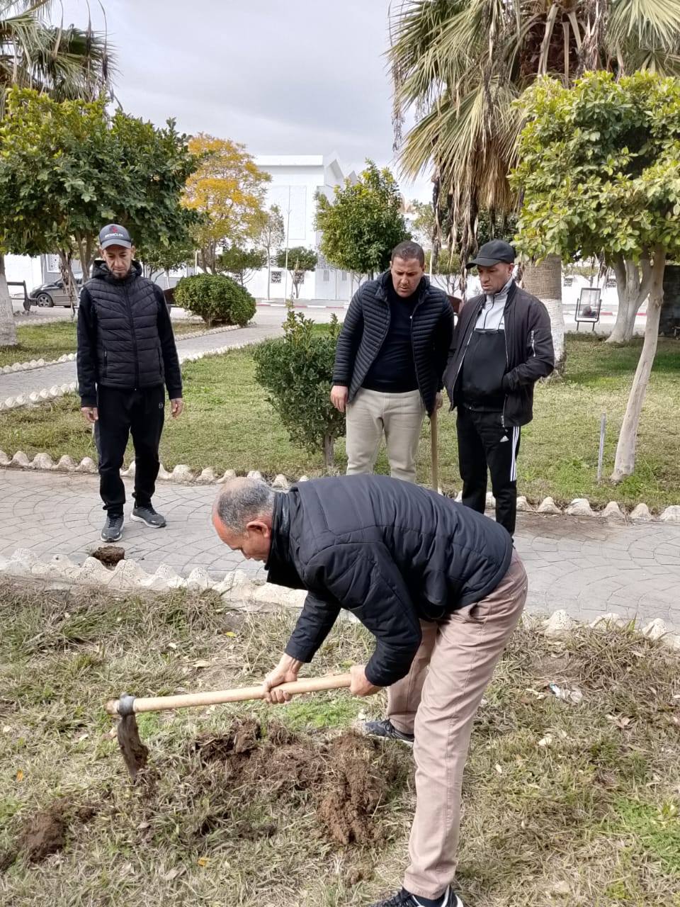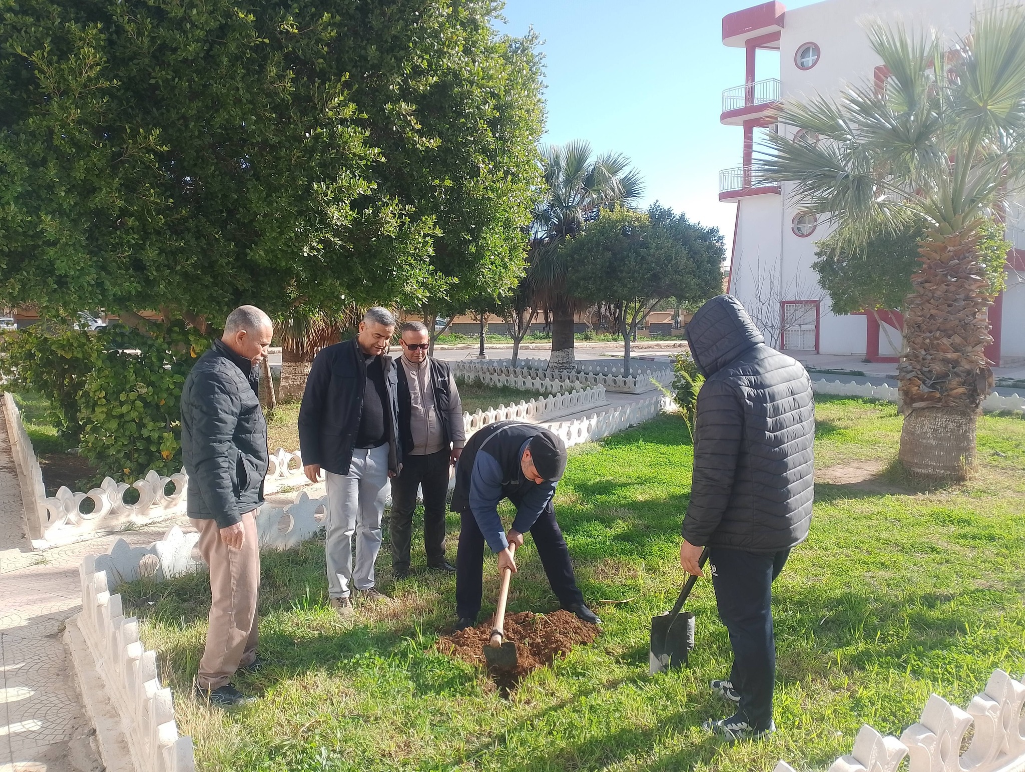 🌳 🌿في أجواء يسودها التعاون المثمر 🤝 وتجسيداً لقيم المواطنة البيئية 🇩🇿، شاركت كلية الآداب واللغات يوم السبت 14 فيفري 2026 في حملة تشجير على محيط الكلية 🌲، حيث تشرّفت العملية بحضور السيد نائب مدير الجامعة 🏛️ رفقة السيد عميد الكلية والسيد الأمين العام 👔، وبمشاركة فعالة من السيد رئيس مصلحة الأنشطة الرياضية والثقافية والعلمية 🏆؛ وقد تظافرت جهود مصلحة الوسائل العامة 🛠️ والعمال المهنيين وأعوان الأمن 👮 مع حماس وطاقة رئيس نادي موسى الأحمدي نويوات 🎓، حيث غُرست مجموعة من الأشجار والشتلات 🪴 على محيط الكلية.