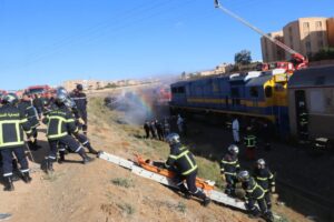 قامت مديرية الحماينة المدينة تحت إشراف السيد والي ولاية المسيلة يوم الأحد 21 ديسمبر 2025 بتظاهرة تجريبية رمزية تتمثل في مناورة محاكاة تمرين افتراضي تجريبي لخطر اصطدام قطارنقل المحروقات مع قطار نقل المسافرين.