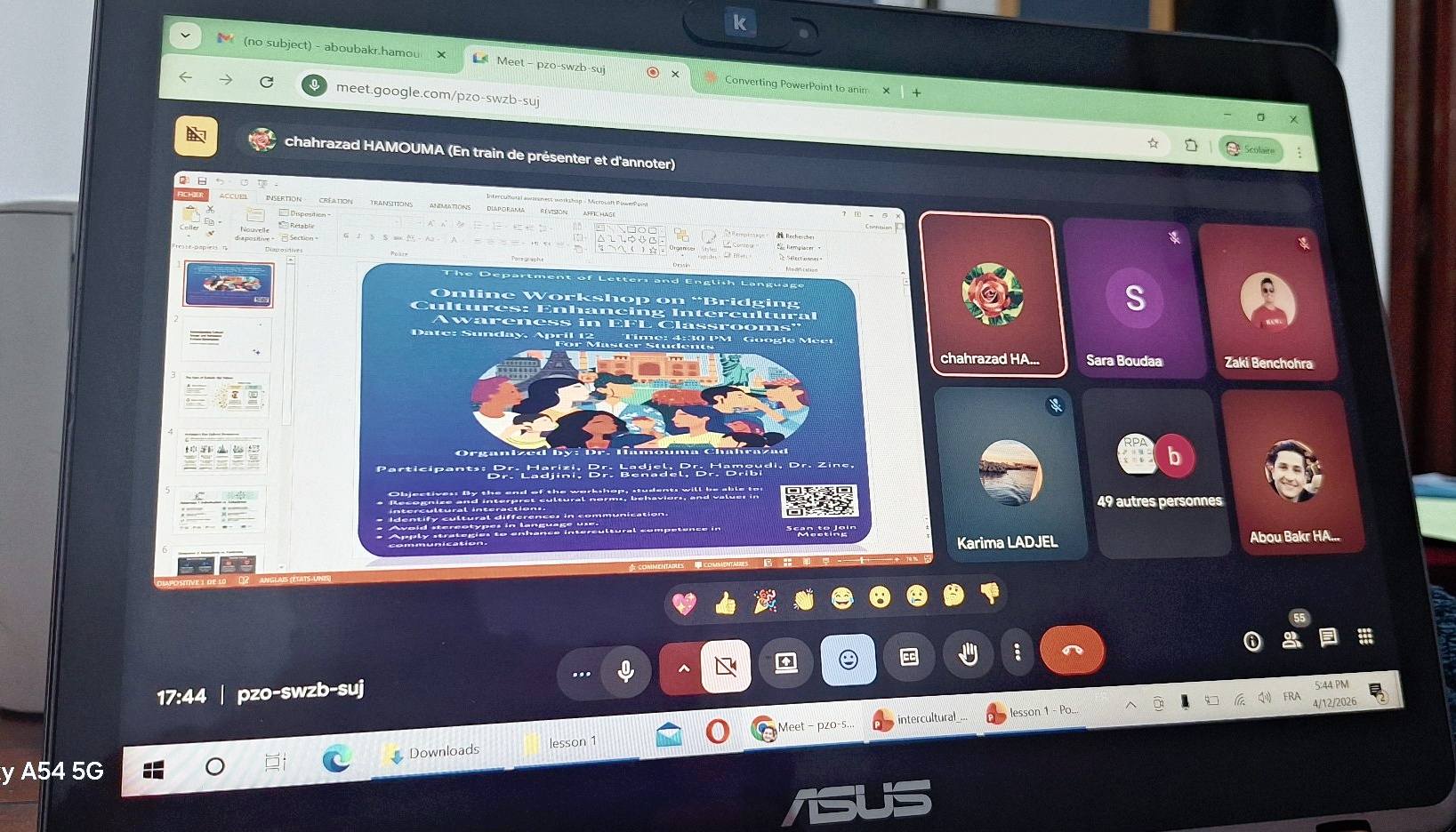 يتقدم قسم الآداب واللغة الإنجليزية بخالص الشكر والتقدير لجميع الأساتذة والطلبة والضيوف الكرام الذين شاركوا وأثروا ورشة العمل حول “الوعي الثقافي”، التي نظمتها بنجاح الدكتورة حمومة.