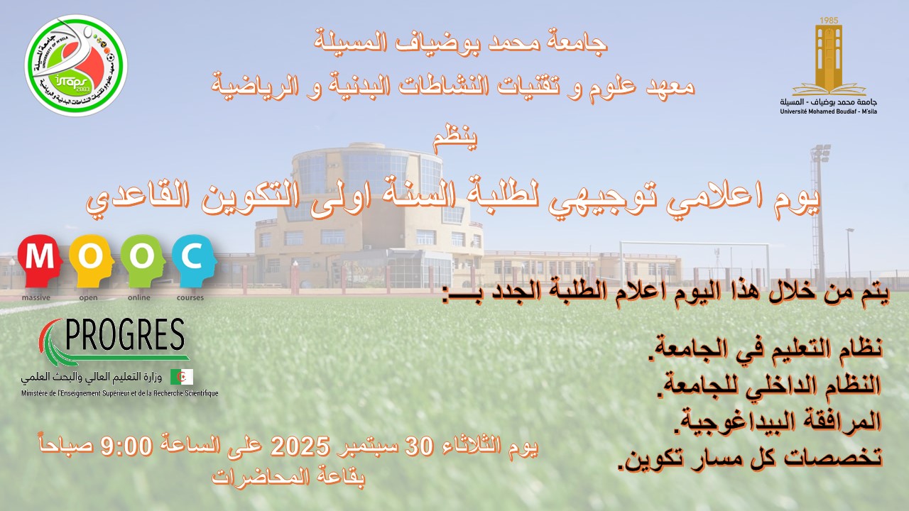 معهد علوم وتقنيات النشاطات البدنية والرياضية بجامعة محمد بوضياف بالمسيلة ينظم