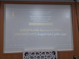 حملة تحسيسية حول التوعية بنظام الجودة العالمي:ISO 9001_2015 لفائدة الطلبة و أعضاء النادي العلمي
