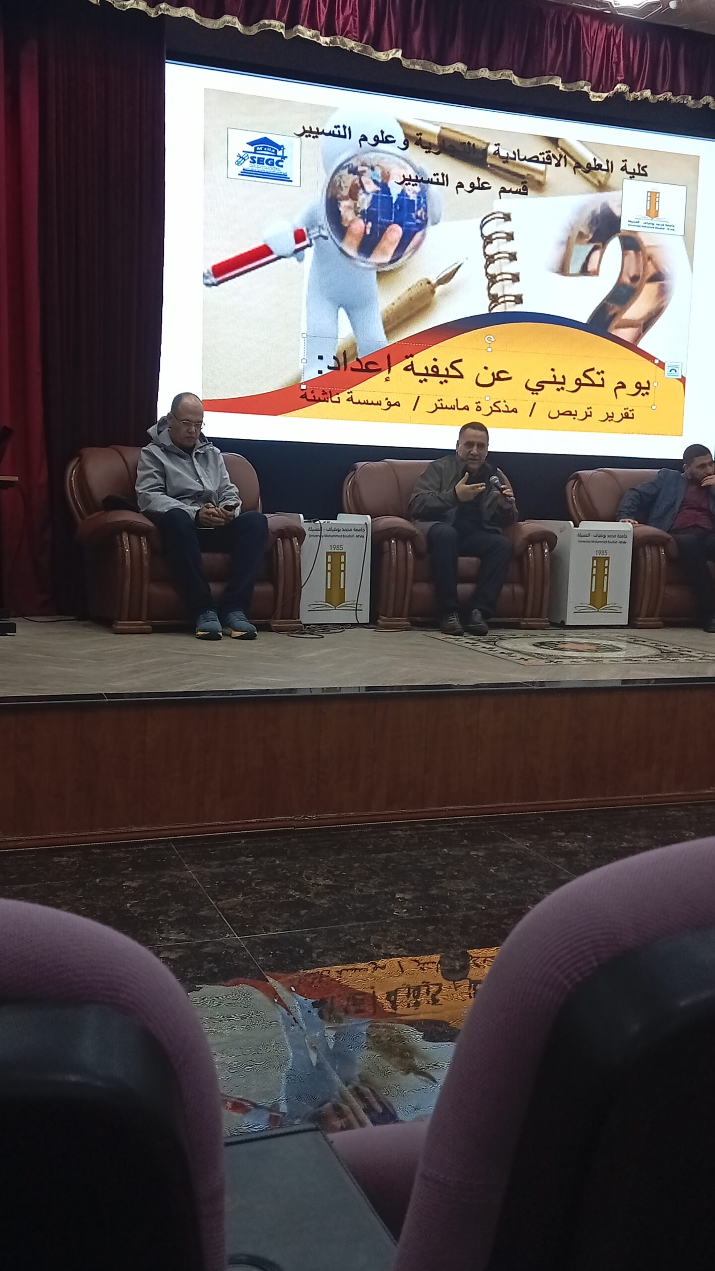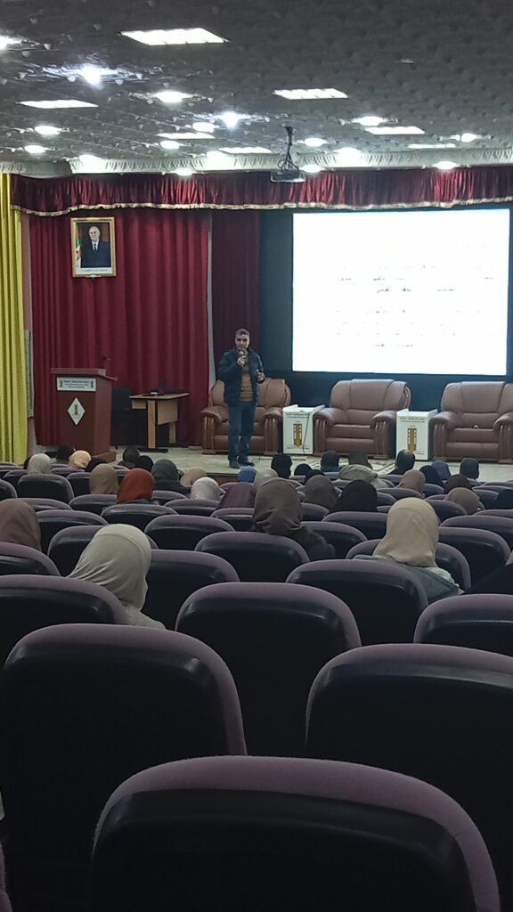 Today, on February 12, 2024, a training-day organized by the Department of Management Sciences on how to prepare an internship report and a graduation project dissertation for the Master of Entrepreneurship program . Starting at 9:00 AM in the Taher Saraich Lecture Hall at the Central Library of the University in downtown. The training day witnessed a large attendance of students.