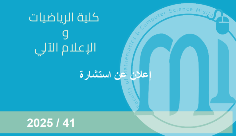 تحت اشراف السيد مدير جامعة المسيلة، البروفيسور عمار بودلاعة والسيد عميد كلية الرياضيات والاعلام الآلي، البروفيسور نويري ابراهيم والسيد رئيس مخبر LFAGS الأستاذ دريهم...