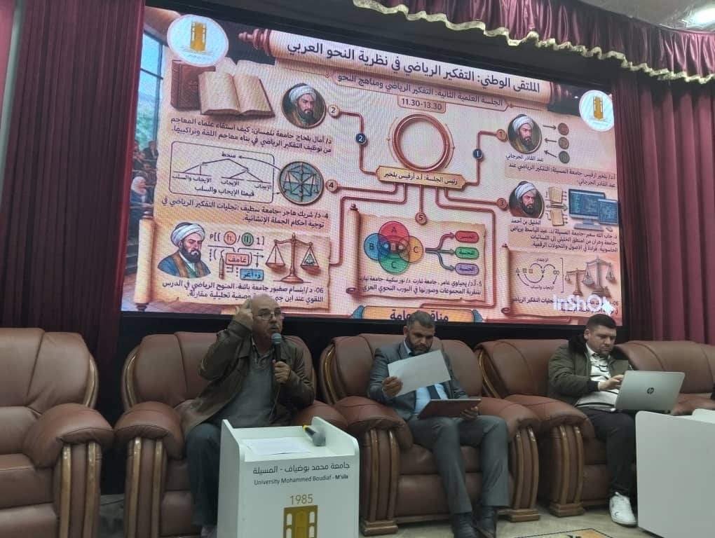 The presentations focused on exploring the depths of mathematical logic** 🔢 inherent in the structure of Arabic grammar, and examining how early grammarians constructed a linguistic system based on analogy, reasoning, and deduction—tools that share a fundamental similarity with precise mathematical thinking 📐. Final Outcomes and Recommendations
