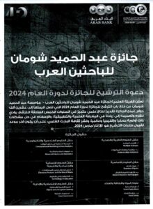 Nomination for the Forty-Second Cycle of the Abdul Hameed Shoman Award for Arab Researchers