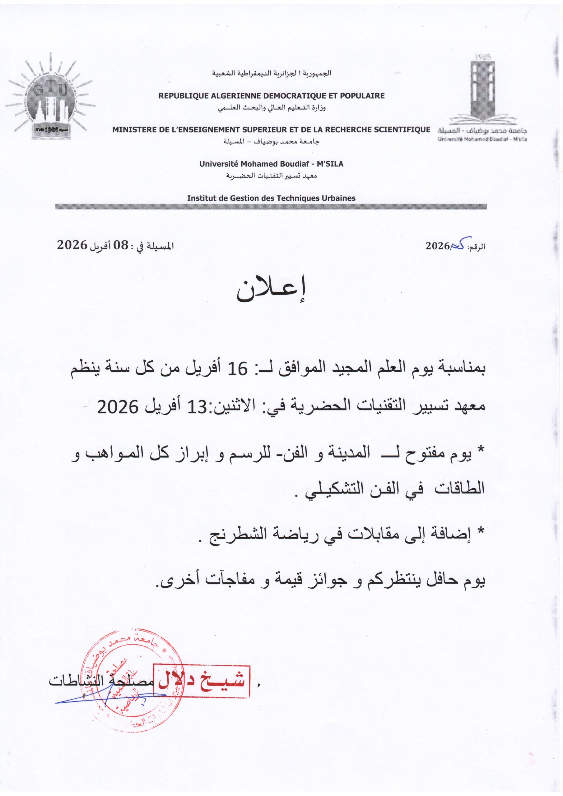 On the occasion of the glorious Science Day, which falls on April 16th of each year, the Institute of Urban Technology Management is organizing Continue reading