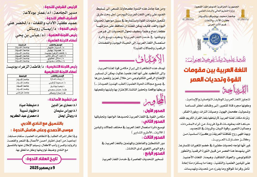 Scientific seminar : “The Arabic Language Between the Pillars of Strength and the Challenges of the contemporary Period” December 9, 2025